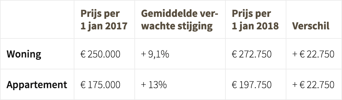- De huizenprijzen gaan verder stijgen in 2018. Aan het begin van 2018 kopen is daarom verstandiger dan wachten.